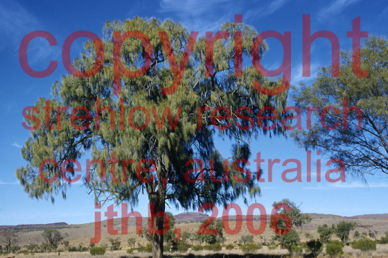Desert Oaks (Allocasuarina decaisneana) are found across Central Australia. The sapling oak is tall and thin in contrast to the mature tree which is full and bushy. The change in appearance occurs once the tree has established its tap roots and is able to access underground water sources.