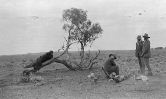 Mattner is on the left lying on the tree. Identity of other men unknown