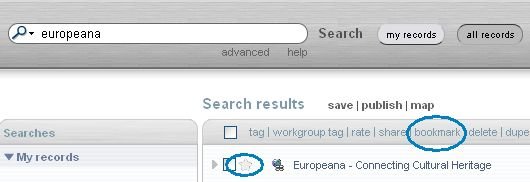 Bookmarks allow users to flag the records that interest them and to add personal information to each record, such as tags, ratings, notes, password reminders and triggers to send notification emails.