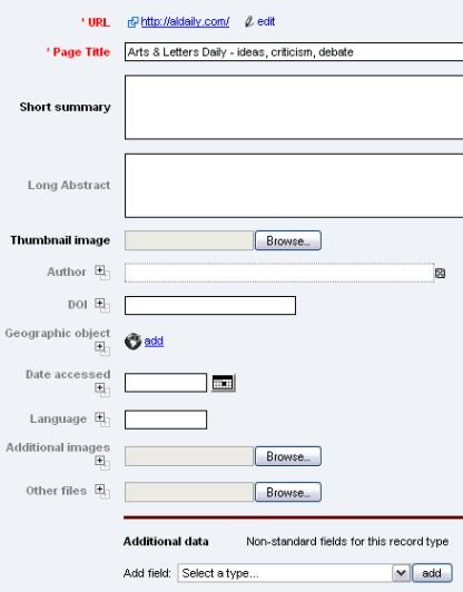 Additional fields can be added by Administrators without programming. The set of fields composing a record type can also be changed, either globally or for specific instances of Heurist.