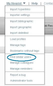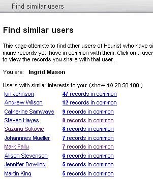 Heurist attempts to find other users that have similar interests. It ranks other users based on how many records in common with them.