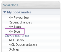 The My Blog link searches for all Blog entries bookmarked by the user, and filters them for the last month, displaying the most recent at the top.