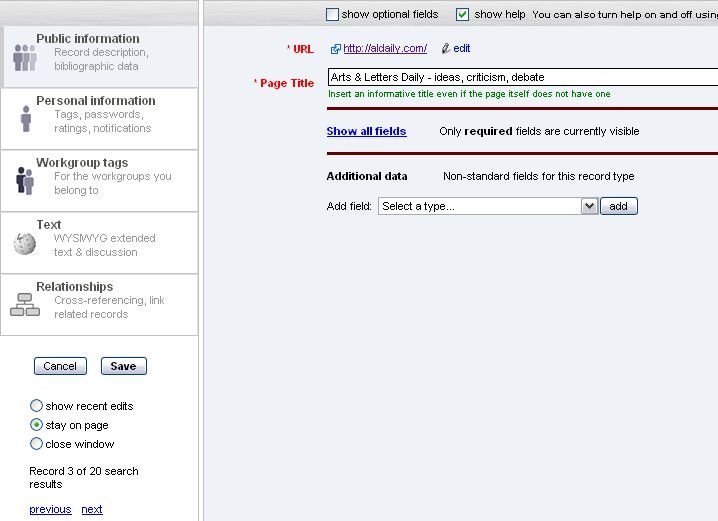 The Heurist community can edit and enhance the records collectively added to Heurist. By default, all records are public ownership, in the spirit of collaborative databases, and all public information can be edited by any Heurist user.